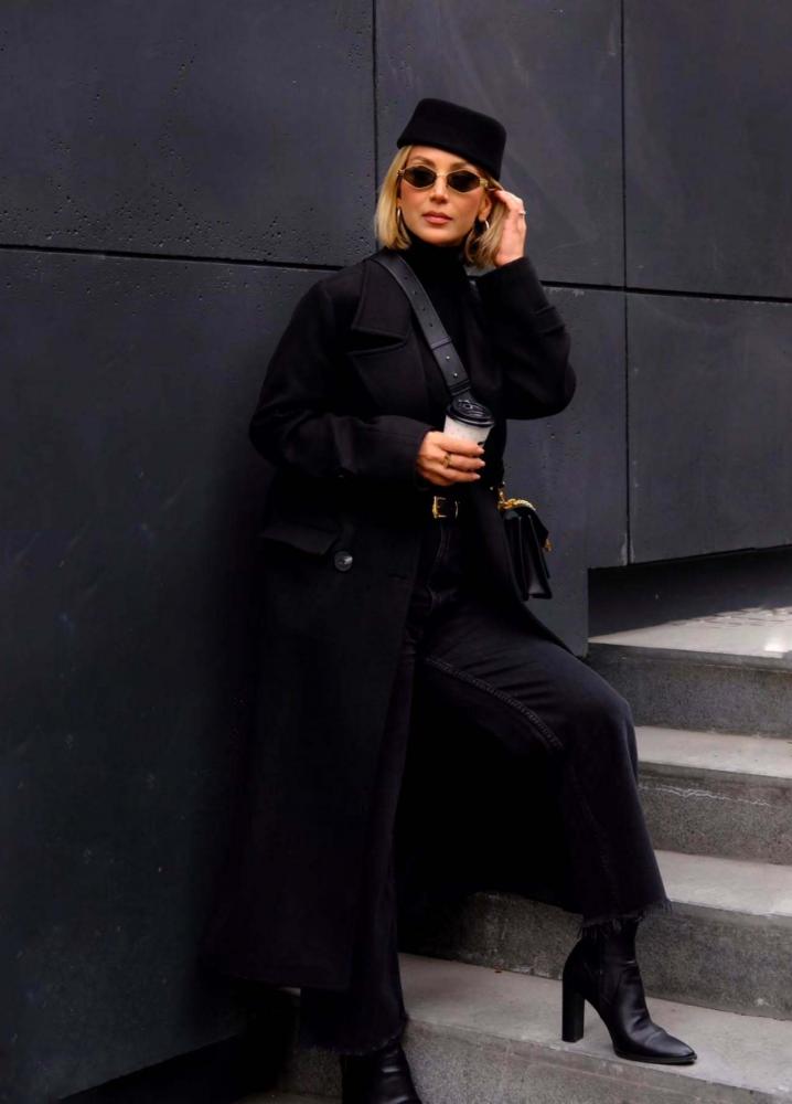 اقتصاد ایران: مینا مختاری با استایل تماممشکی و ترکیب کلاسیک پالتو، کلاه و اکسسوریهای مینیمال، جلوهای شیک و مدرن به خیابانهای شهر بخشید.