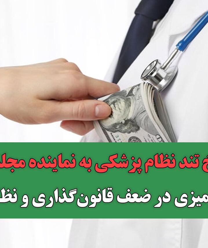 در پاسخ به اظهارات جنابعالی در صحن علنی مجلس شورای اسلامی در تاریخ 30 آذر ماه در قالب تذکر شفاهی درخصوص پدیده زیرمیزی پزشکان؛ این اظهارات، خلاف واقع و به دور از انصاف بوده و موجب سلب اعتماد شهروندان نسبت به جامعه خدوم پزشکی و به مخاطره افتادن سلامت آنان می شود. اظهارات شما درخصوص حمایت صرف سازمان نظام پزشکی از حقوق صنفی همکاران و عدم دفاع از حقوق مردم کاملا خلاف واقعیت موجود می باشد که رای های صادره از هیات های انتظامی در این خصوص موجود و مستند است. این اظهارات درحالی بیان می شود که تضییع حقوق بیماران عموما توسط کسانی صورت می گیرد که سال ها نه قوانین موجود در حوزه سلامت را اجرا کرده اند و نه بر حسن اجرای این قوانین نظارت موثر می کنند. به نظر می رسد نادیده گرفتن حقوق جامعه پزشکی، وضع و تعیین تعرفه های دستوری حداقلی، عدم پرداخت مطالبات توسط سازمان های بیمه گر و عدم پرداخت سهم سلامت از منابع عمومی کشور و ده ها تخلف قانونی دیگر، همگی مغفول مانده اند که این امر موجب اختلال در مدیریت حوزه سلامت و از بین رفتن حقوق بیماران شده است و عامل آن نه تنها جامعه پزشکی نبوده بلکه مسوولین و سیاستگذاران مربوطه می باشند. لازم به ذکر است که پدیده زیرمیزی یک کنش نبوده بلکه واکنشی ناشی از عدم اجرای قانون و تحقق مطالبات به حق جامعه پزشکی می باشد که تا ریشه و علل زمینه ای آن به طور علمی و عملی حل و مرتفع نشود، هرگونه هیاهوی رسانه ای و فریاد های از پشت تریبون و مرثیه خوانی های نخ نما و تکراری بر معلول، نه تنها دردی را دوا نخواهد کرد- کما اینکه در طی سال های اخیر حل نکرده- بلکه به اعتماد بین مردم و جامعه پزشکی که یکی از ارکان اصلی درمان است هم لطمه اساسی وارد می آورد.