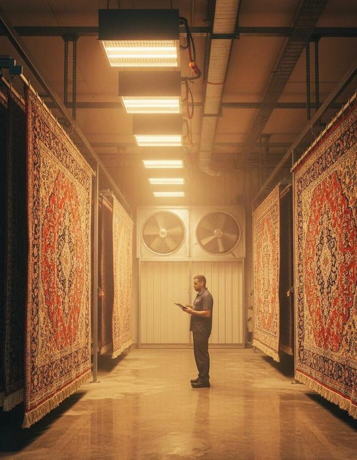 گرمخانه طبقاتی؛ فرآیند نهایی در قالیشویی پاکمهر