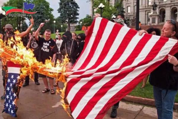 معترضان پرچم آمریکا را در پاریس به آتش کشیدند