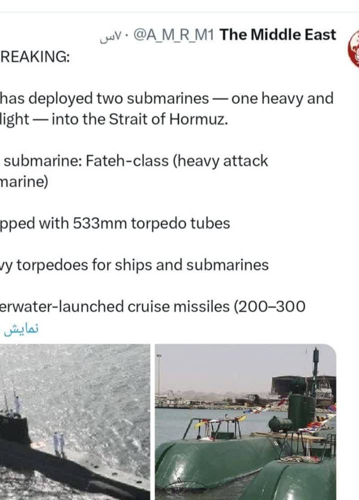 صابرین نیوز: ایران یک زیردریایی سنگین کلاس فاتح و یک زیردریایی سبک کلاس غدیر را در تنگه هرمز مستقر کرده است؛ آرایشی که بر افزایش بازدارندگی دریایی در این گذرگاه حیاتی دلالت دارد.