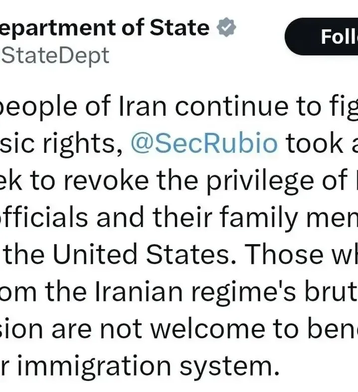خبر فوری: وزارت امورخارجه آمریکا با انتشار توئیتی اعلامکرد: فرزندان و اعضای خانواده مقامات ایرانی را از آمریکا اخراج خواهیم کرد.
