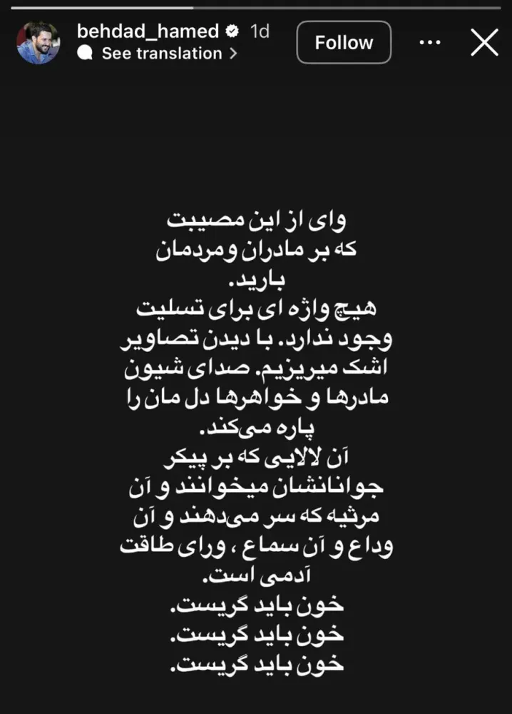 اقتصاد ایران: حامد بهداد، بازیگر مشهور سینما با انتشار یک استوری دردناک با بازماندگان حوادث دیماه ۱۴۰۴ ابراز همدردی کرد.