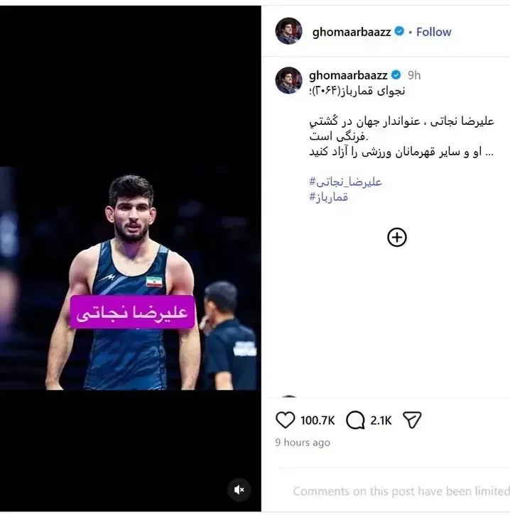 فرارو: رسول خادم، اسطوره کشتی ایران، به تازگی با انتشار تصویری از علیرضا نجاتی که در ناآرامیهای اخیر بازداشت شده، خواستار آزادی او شده است. او با انتشار تصویری از این کشتیگیر نوشته که «علیرضا نجاتی ، عنواندار جهان در کشتی فرنگی است. او و سایر قهرمانان ورزشی را آزاد کنید