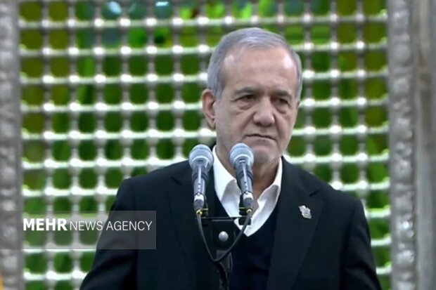 پزشکیان ادامه داد: من در این مکان مقدس از خداوند بزرگ میخواهم ما را در مسیری قرار دهد که رضای او در آن نهفته است؛ ما را در مسیری قرار دهد که شهدا، بزرگان، امامان ما توصیه کردند و به خاطر آن جنگیدند و جانشان را فدا کردند. ما نجنگیدیم و آنها شهید نشدند که ما بخواهیم بر عدهای قلدری کنیم، زور بگوییم یا خدای نکرده خدمتگزار این مردم نباشیم.