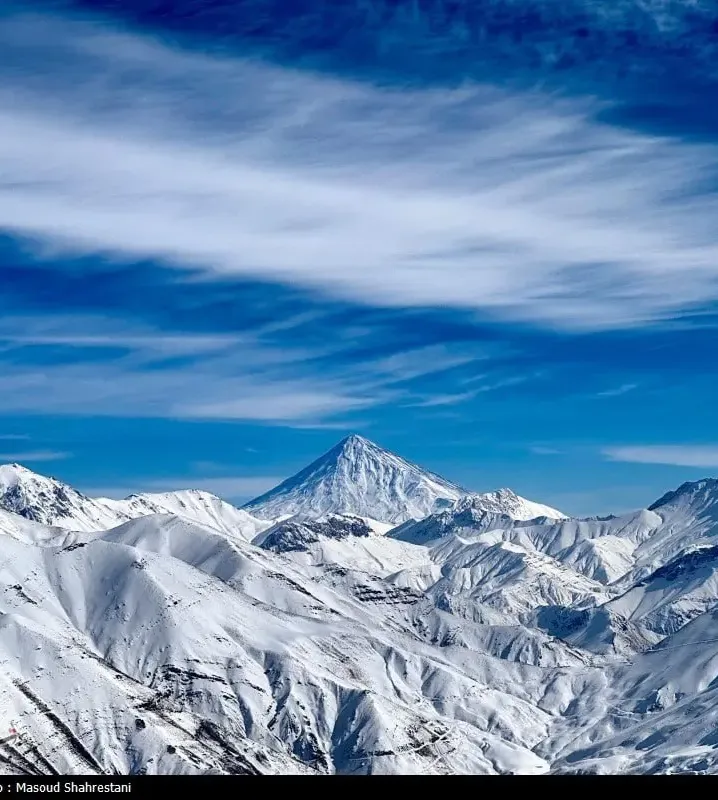 برترینها: تصویری خیرهکننده از قله دماوند که در دومین ماه زمستان، پوشیده از برف و زیر آسمان آبی، جلوهای آرام و باشکوه از بلندای ایران به نمایش میگذارد.