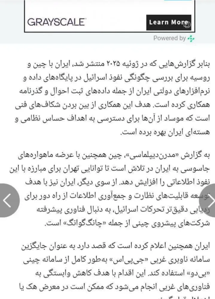 صابرین نیوز به نقل از یورو نیوز نوشت: چین برای نابودی موساد در ایران به حکومت یاری می دهد.