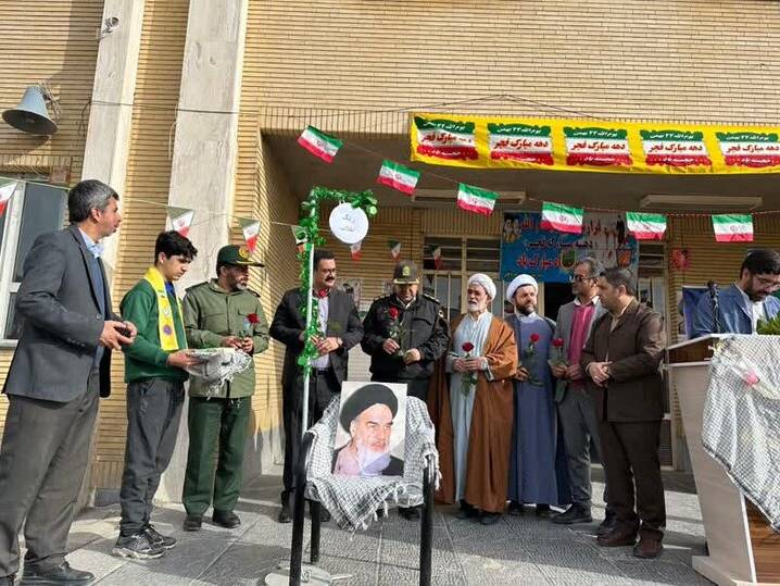 در لحظه نمادین ورود بنیانگذار کبیر انقلاب اسلامی به خاک وطن، فضای دبیرستان شریف واقفی چناران با طنین زنگ انقلاب و فریادهای الله اکبر و گلباران تمثال امام خمینی (ره) عطرآگین شد.