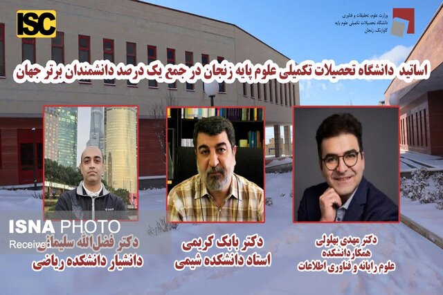 ۳ استاد دانشگاه تحصیلات تکمیلی علوم پایه زنجان در جمع یک درصد پژوهشگران برتر جهان