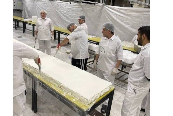پخت کیک ۵۰۰ متری در حرم رضوی به مناسبت میلاد امام زمان (عج)