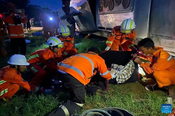 به گزارش خبرنگار مهر به نقل از شینهوا، پلیس اعلام کرد که این تصادف در جاده اصلی شماره ۲ در شهرستان هلگو زمانی رخ داد که یک کامیون حامل کارگران کارخانه کنترل خود را از دست داد، به لاین مخالف منحرف شد و با یک مینیبوس برخورد کرد.