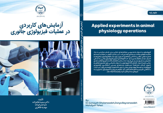 کتاب« آزمایشهای کاربردی در عملیات فیزیولوژی جانوری» توسط دکتر سمیه غلامزاده عضو هیات علمی دانشگاه قرهنگیان ارومیه، دنیا بایرامزاده و مهدیه طاهری تالیف شده است که در آن، به بررسی ۲۰ آزمایش کاربردی برای تمامی گرایش های رشته زیست شناسی و برخی از گرایش های علوم پزشکی می پردازد.