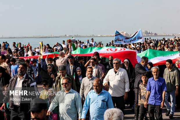 در شهرستان میناب نیز ساعت ۹ از اداره پست خیابان غدیر شمالی به سمت چهار راه خبرنگار