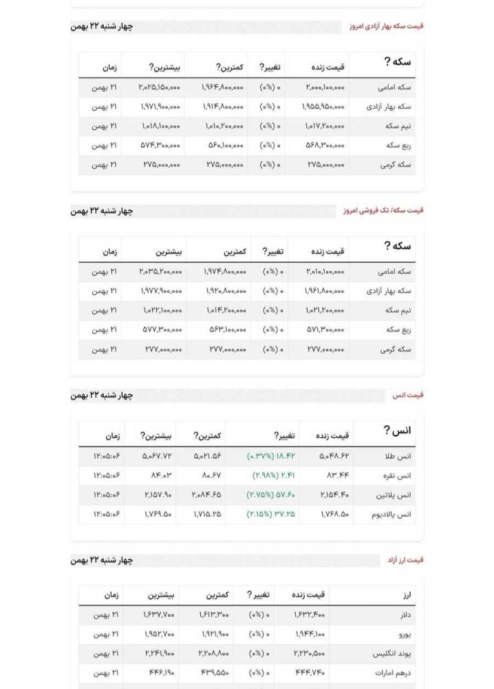 قیمت سکه امامی هم ۲۰۱ میلیون و ۱۰ هزار تومان شد. دلار آمریکا در بازار آزاد نیز به رقم ۱۶۳ هزار و ۲۴۰ تومان رسید.