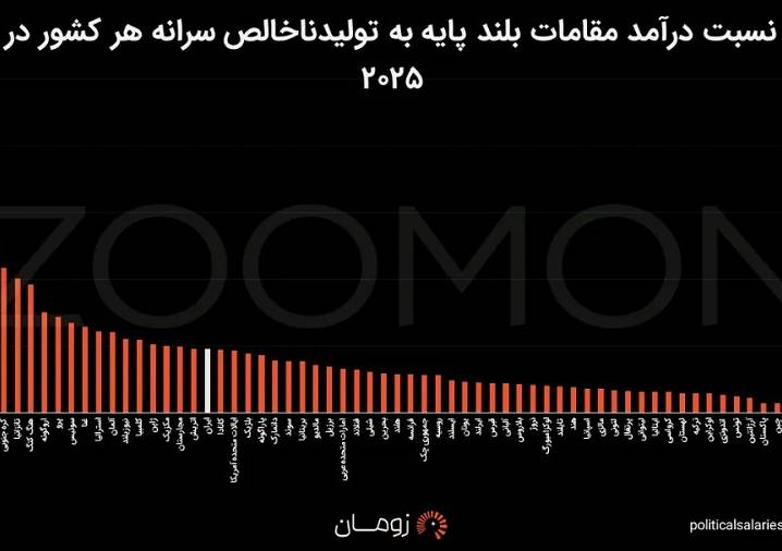 شاید فکر کنید این نسبت چندان بالا نیست، اما آمارها داستان دیگری می‌گویند. بررسی‌های وب‌سایت PoliticalSalaries.com که درآمد رهبران کشورهای مختلف را بررسی می‌کند، نشان می‌دهد که ایران با همین نسبت، در میان ۹۸ کشور جهان در جایگاه ۲۸ام قرار می‌گیرد. این یعنی نسبت درآمد رئیس جمهور ما به تولید سرانه کشور، از بیش از ۷۰ درصد کشورهای دنیا، از جمله کشورهایی مانند آمریکا و کانادا، بالاتر است. پس قصه این است که اگر ارزش پول ملی کم شده، این کاهش برای همه بوده و جایگاه درآمدی مسئولان در قیاس با کل اقتصاد، همچنان بالاست.