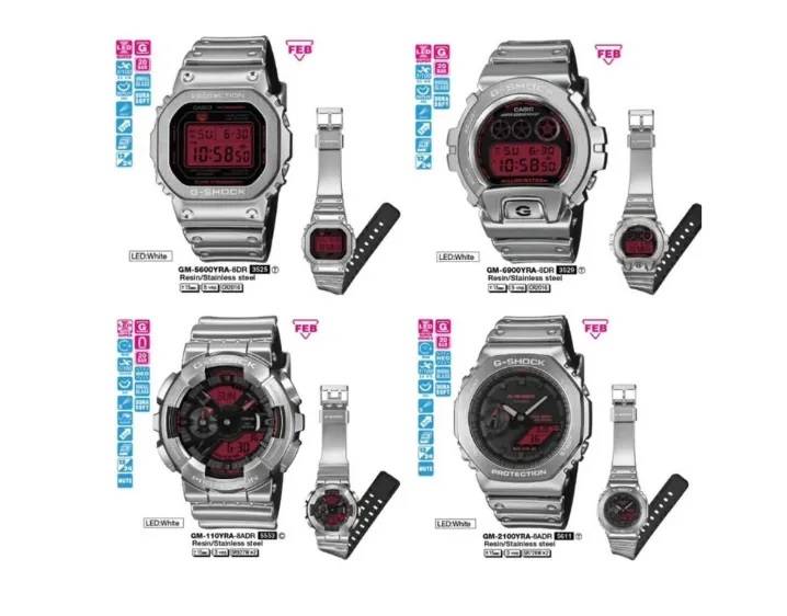 به گزارش خبرگزاری اقتصاد ایران، شرکت کاسیو مجموعهای تازه از ساعتهای جیشاک با قاب فلزی و نمایشگر قرمز پررنگ معرفی کرد که روانهی بازارهای جهانی هم میشوند. این ساعتها شامل مدلهای GM-110YRA-8JF و GM-2100YRA-8JF و GM-5600YRA-8JF و GM-6900YRA-8JF هستند.