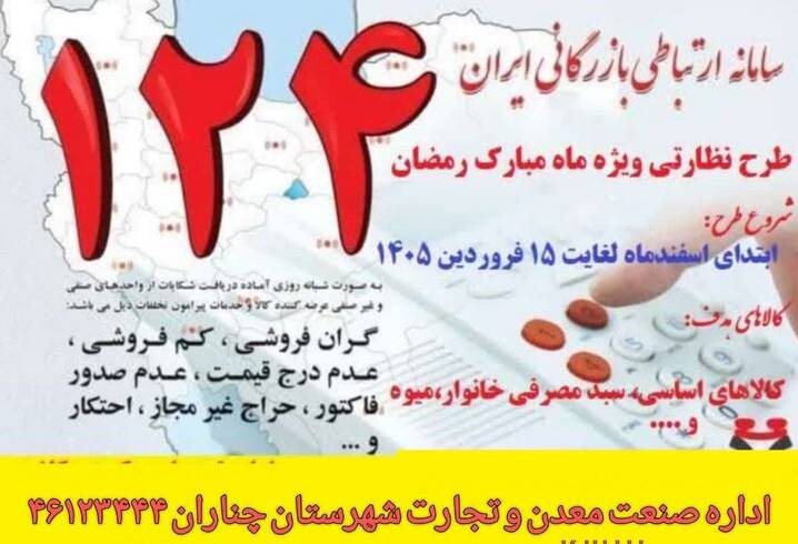 اقتصاد ایران: چناران- رئیس اداره صمت چناران از اجرای طرح نظارتی ویژه ایام پایانی سال و ماه مبارک رمضان از ابتدای اسفند تا ۱۵ فروردین سال آینده در چناران خبر داد.