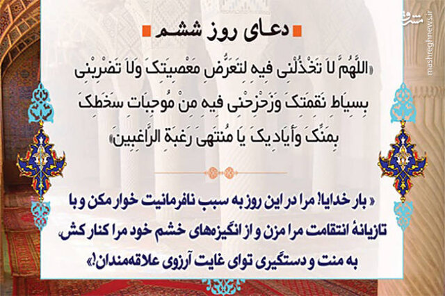 در دعای روز ششم ماه مبارک رمضان آمده است: