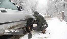 بارش برف در ماسوله؛ محدودیت ترافیکی برای خودروهای فاقد زنجیرچرخ