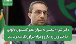 دکتر شهرام شعیبی به عنوان عضو کمیسیون قانونی ساخت و ورود دارو و مواد بیولوژیک منصوب شد