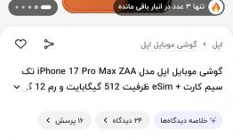 قیمت آیفون ۱۷پرومکس در فروشگاههای اینترنتی ایران