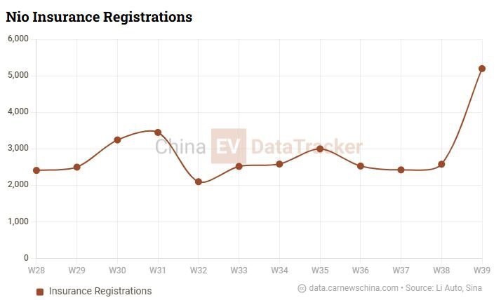 برند Nio فروش 5200 دستگاه خودرو را ثبت کرد که نسبت به 2580 دستگاه خودرو فروخته شده در هفته قبل افزایش 101.6 درصدی داشت و نسبت به همین هفته در سال قبل که 6100 دستگاه خودرو فروخته بود کاهش 14.75 درصدی را ثبت کرد.