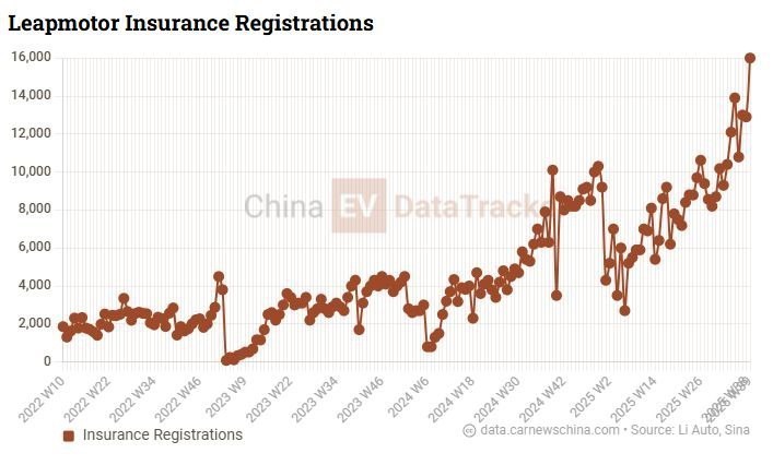 برند Leapmotor تحت حمایت استلانتیس با ثبت فروش 16000 دستگاه نسبت به 12900 دستگاه خودرو فروخته شده در هفته قبل افزایش 24 درصد را ثبت کرد اما نسبت به 10100 دستگاه خودرو فروخته شده در همین هفته در سال قبل هم افزایش 58.42 درصدی داشته است. این رقم بهترین فروش هفتگی تاریخ لیپموتور است.
