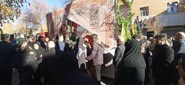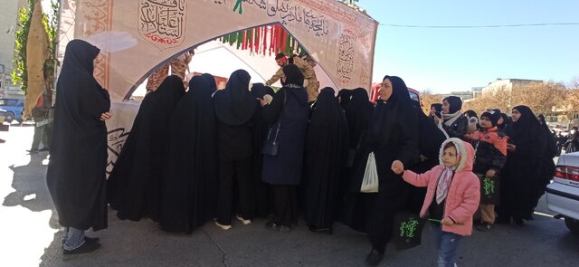 ساعت نزدیک ۹ صبح و هر لحظه مردم به جمعیت میپیوندند و منتظرند تا مراسم شروع شود. سرمای هوا مانع از حضورشان نشده، نوحه در حال پخش است.