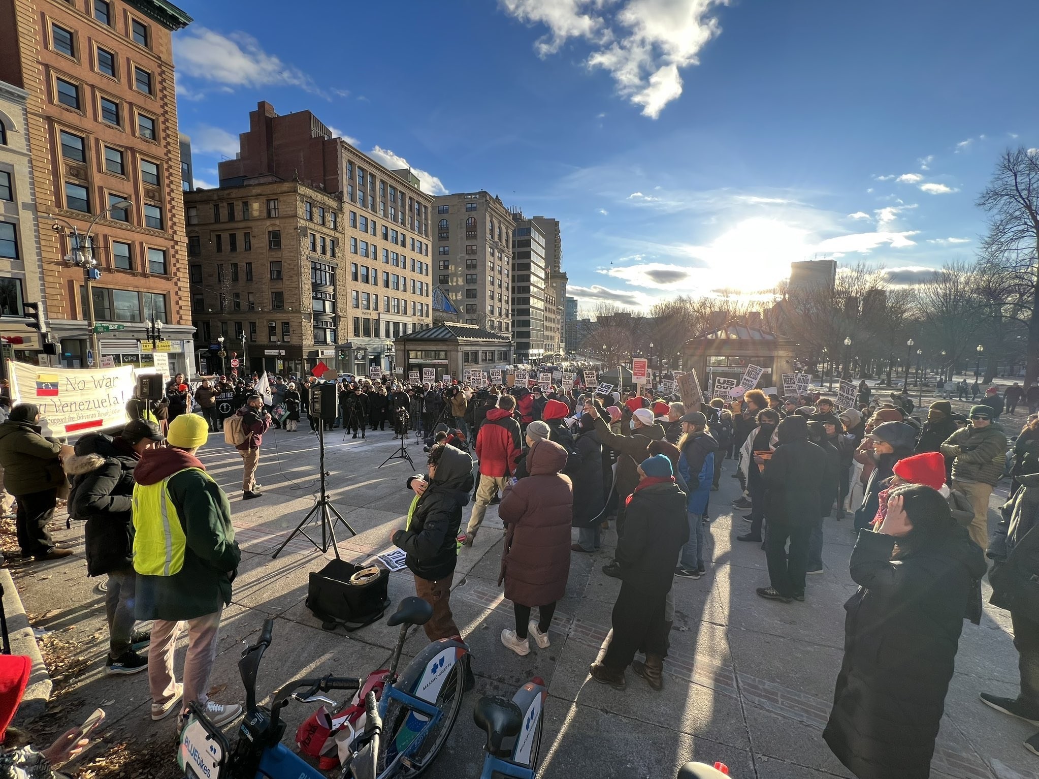 اعتراضات مشابهی در بوستون برگزار شد و معترضان در بوستون کامن گرد آمدند و علیه «عملیات نظامی آمریکا» و «ربودن مادورو» اعتراض کردند. گروههای ضدجنگ تجمعاتی در لسآنجلس، شیکاگو، فیلادلفیا و سیاتل نیز در برگزار کردند.
